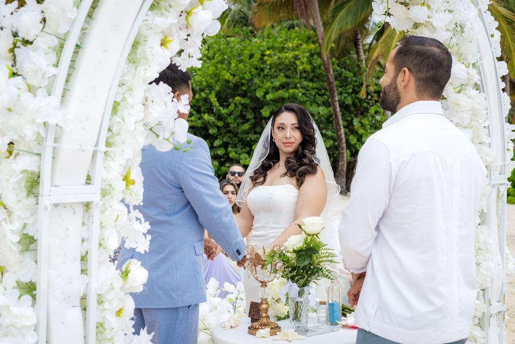 Piękny elopement Yolin i Pedro na prywatnej plaży był pełen intymności, radości i miłości. Otoczeni rodziną i przyjaciółmi, świętowali swój wyjątkowy dzień przy dźwiękach oceanu i ciepłej karaibskiej bryzy. Miękki piasek i turkusowe morze stworzyły idealne tło dla tej niezapomnianej chwili.