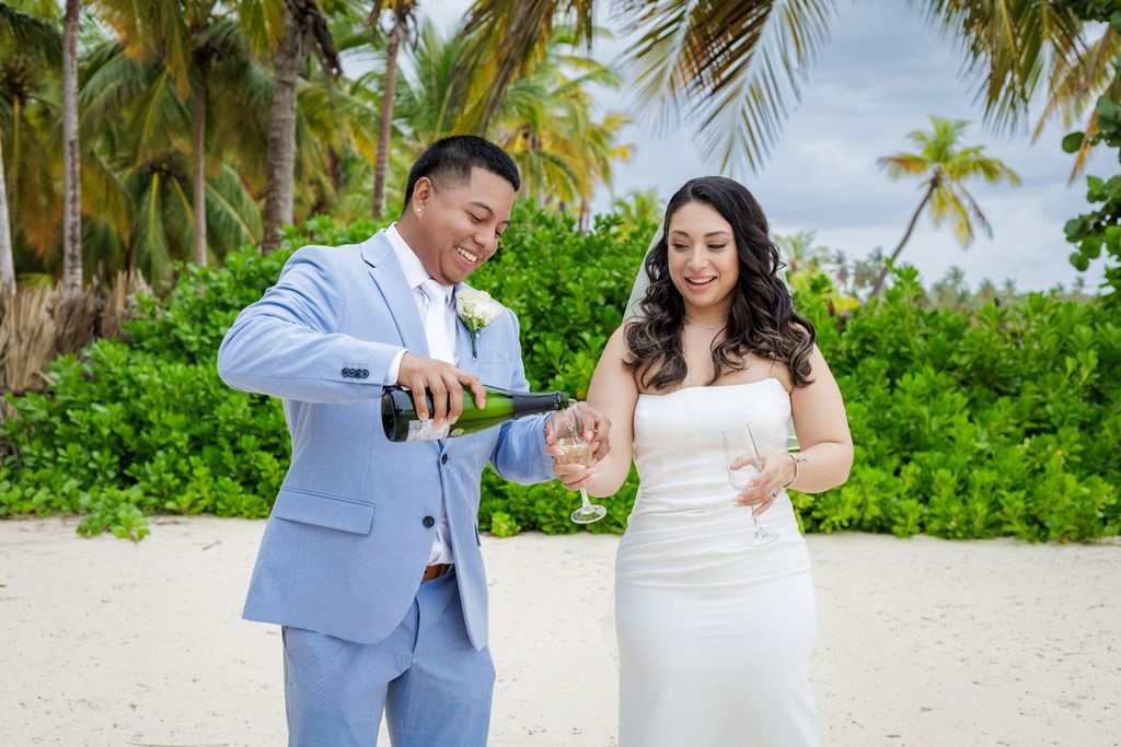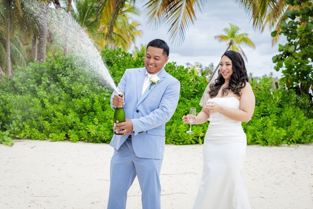 Następnie para wzniosła toast kieliszkiem szampana. Ich bliscy otoczyli ich śmiechem, uściskami i serdecznymi gratulacjami. Była to scena pełna ciepła i szczęścia. Dodatkowo słońce powoli zachodziło nad Morzem Karaibskim, dodając złocistego blasku temu doskonałemu dniowi.