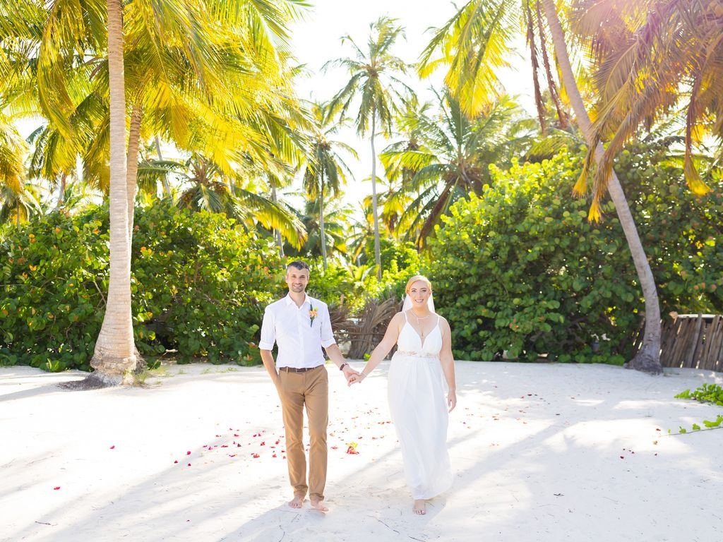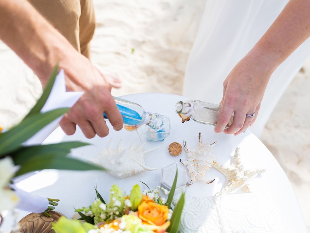 Pod okrągłym łukiem, pięknie udekorowanym białymi kwiatami i liśćmi palmowymi, pan młody czekał na swoją ukochaną. Ich wzruszające pierwsze spotkanie, szczere przysięgi i symboliczna ceremonia z piaskiem w szklanej butelce sprawiły, że ten dzień był niezapomniany. Następnie świętowanie trwało dalej przy szampanie, płatkach róż i niekończących się uśmiechach.