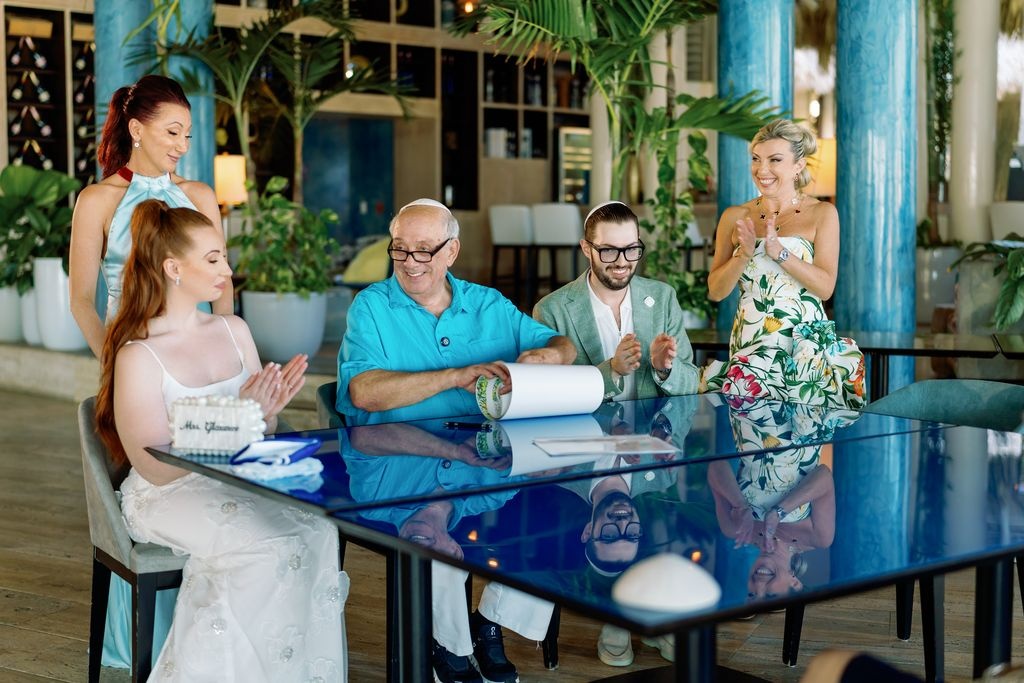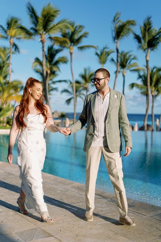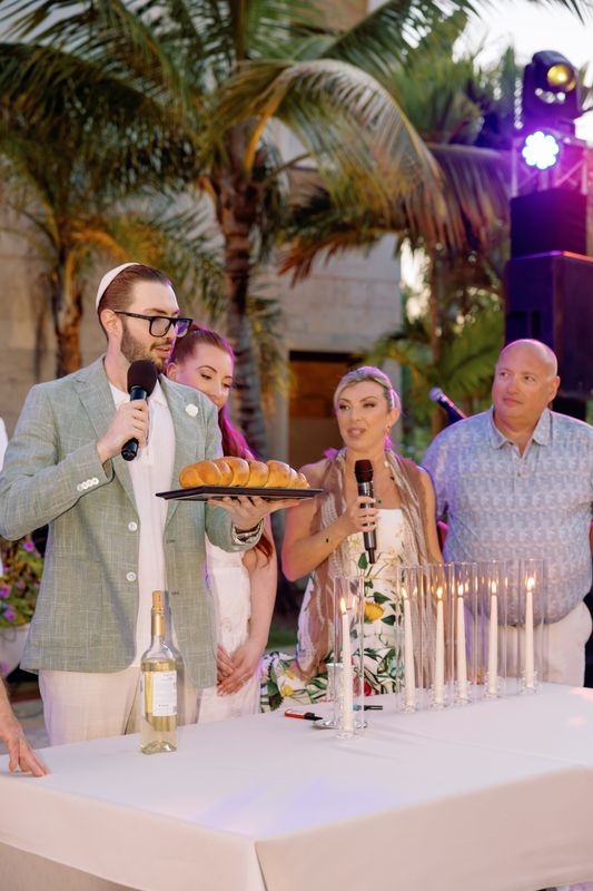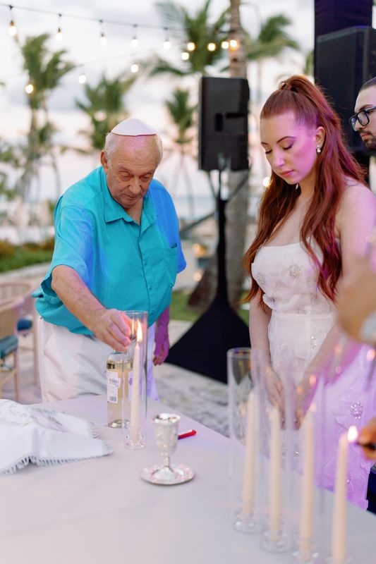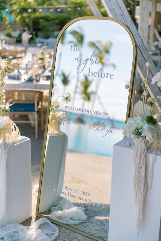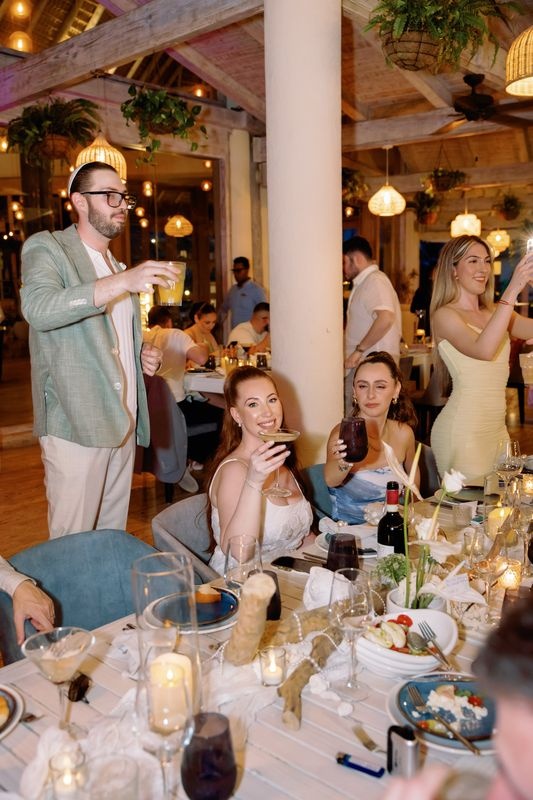 Kolacja powitalna Adama i Alexy w Eden Roc Cap Cana była idealnym rozpoczęciem ich ślubnego weekendu. Przed żydowską ceremonią ślubną para wraz z rodziną i przyjaciółmi spotkała się na wieczorze z widokiem na ocean, pełnym radości i karaibskiego uroku. Atmosfera łączyła wyrafinowaną elegancję z luźnym, wyspiarskim klimatem, tworząc ciepły nastrój na nadchodzące dni.