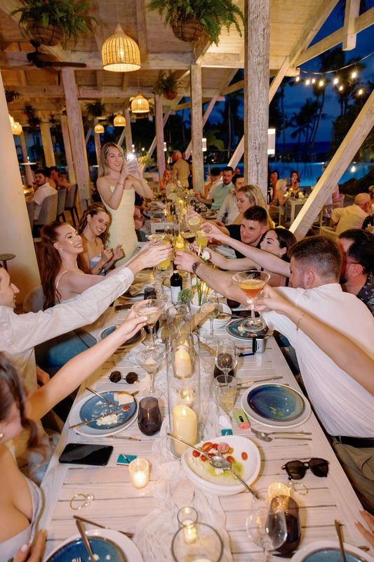 Kolacja powitalna Adama i Alexy była czymś więcej niż posiłkiem — była przeżyciem. Odzwierciedlała ich gust, tradycje oraz radość z dzielenia się miłością z bliskimi. Stała się więc doskonałym wstępem do pięknego ślubnego weekendu w Dominikanie.