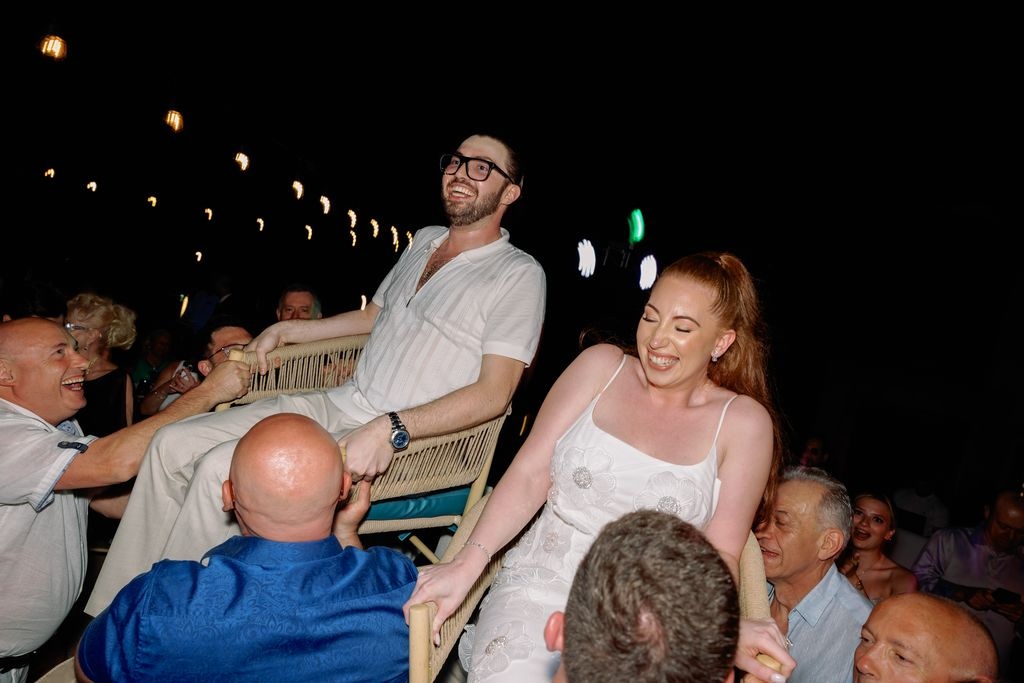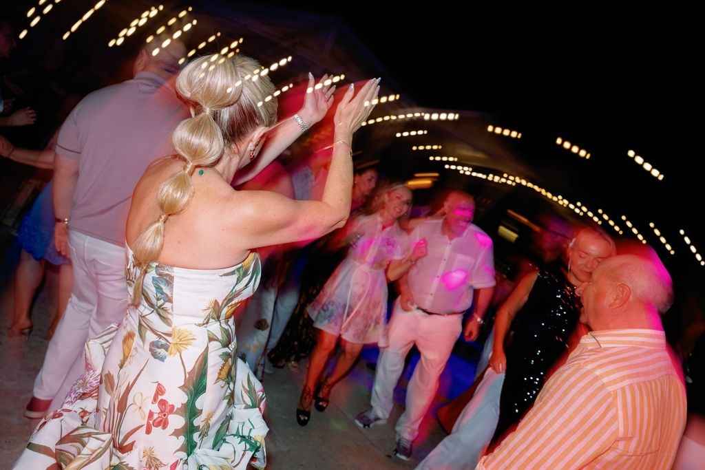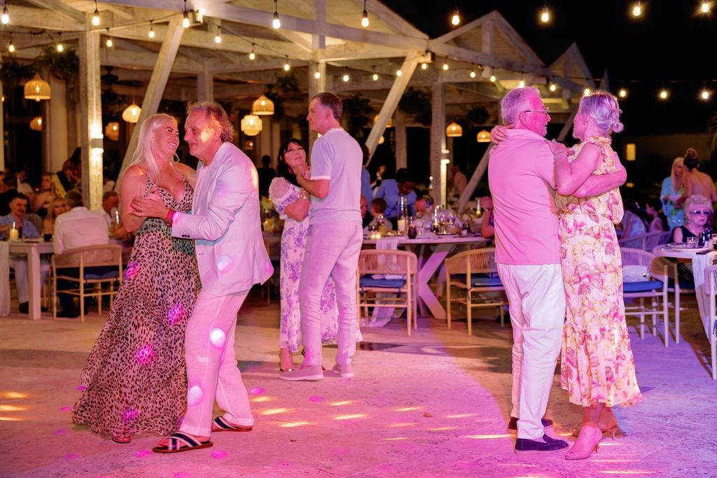 W miarę upływu wieczoru kolacja przekształciła się w pełną energii imprezę na plaży. Rozrywkę zapewnili Anastasia Events z Nowego Jorku oraz MC Gennaro. Ich występy wniosły zaraźliwą energię i radość. Goście tańczyli boso w piasku, śpiewali razem i świętowali pod rozświetlonymi lampkami. Noc zakończyła się uśmiechami, śmiechem i wspomnieniami, które pozostaną na zawsze.